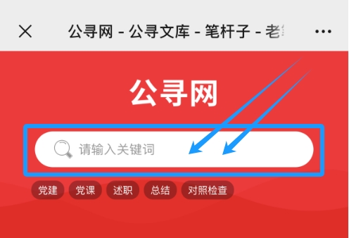 2.在平台首页顶部搜索框中、输入简短关键词来搜索,比如:民主生活会 对照(多关键词之间空格隔开)